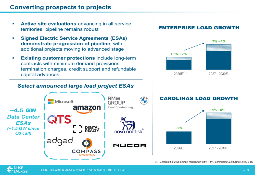 - The Carolinas have become the epicenter of the company’s large-scale “hydrogen-ready” natural gas strategy. This is driven by both the concentration of new data center projects, including for customers like Microsoft, and a state-level mandate in South Carolina to ensure energy security via new dispatchable generation.